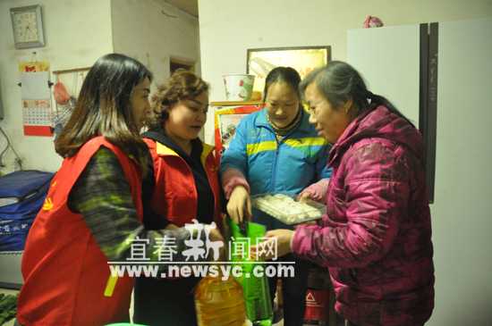 社区干部把包好的饺子等送到困难群众家中。